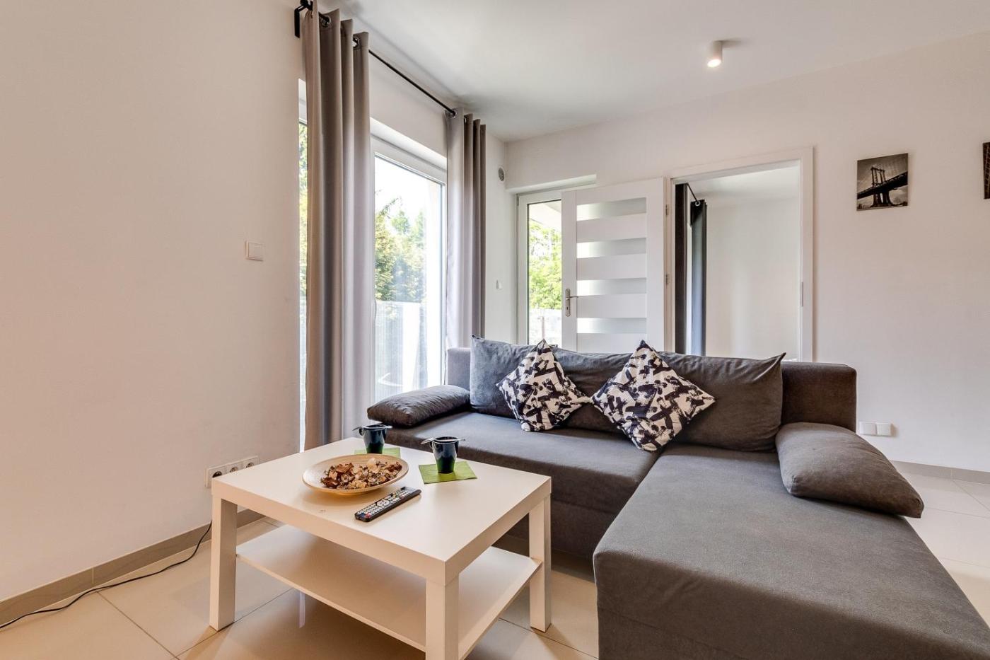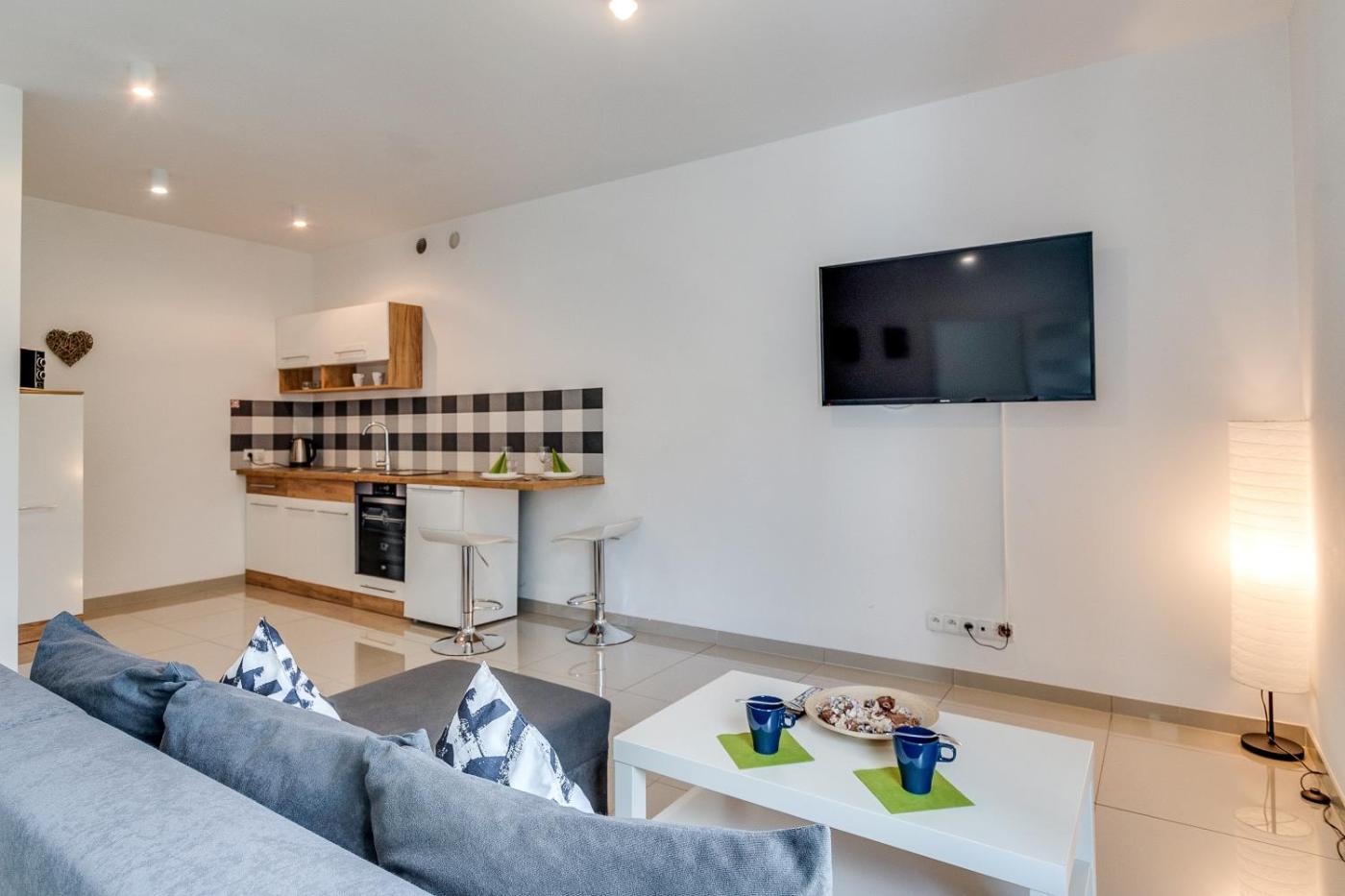 Apartament z 1 sypialnią i balkonem. This apartment consists of 1 living room, 1 separate bedroom and 1 bathroom with a shower and a hairdryer. Guests can make meals in the kitchenette that is equipped with a stovetop, a refrigerator, kitchenware and a microwave. Featuring a balcony with a quiet street view, this apartment also provides a tea and coffee maker and a flat-screen TV. The unit offers 2 beds. Apartament - 4 osobowy. Powierzchnia pokoju ok.: 44 mkw. ;