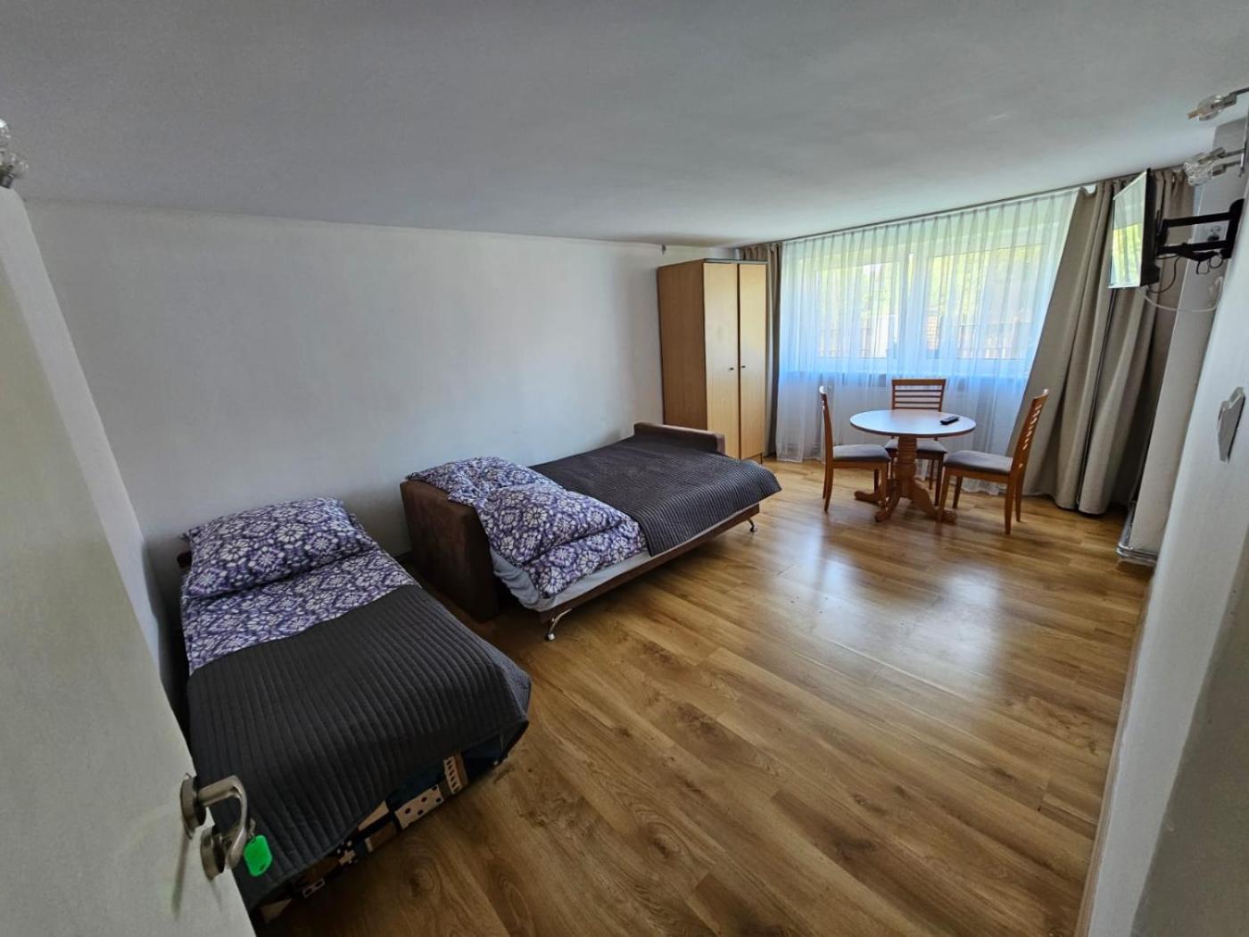 Pokój trzyosobowy. This triple room features a private bathroom, a wardrobe, an electric kettle as well as an outdoor dining area. The unit offers 2 beds. Pokój Trzyosobowy - 3 osobowy. ;