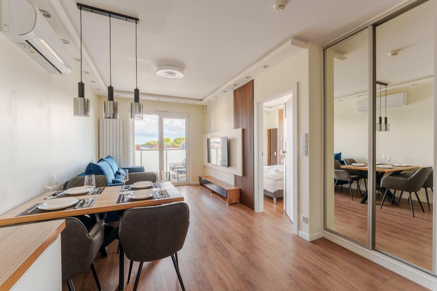 Apartament z 1 sypialnią. This apartments special feature is the sauna. This air-conditioned apartment consists of 1 living room, 1 separate bedroom and 1 bathroom with a shower. In the well-equipped kitchenette, guests will find a stovetop, a refrigerator, a dishwasher and kitchenware. Featuring a balcony, this apartment also provides a washing machine, a seating area and a flat-screen TV. The unit offers 2 beds. Apartament - 4 osobowy. Powierzchnia pokoju ok.: 38 mkw.
