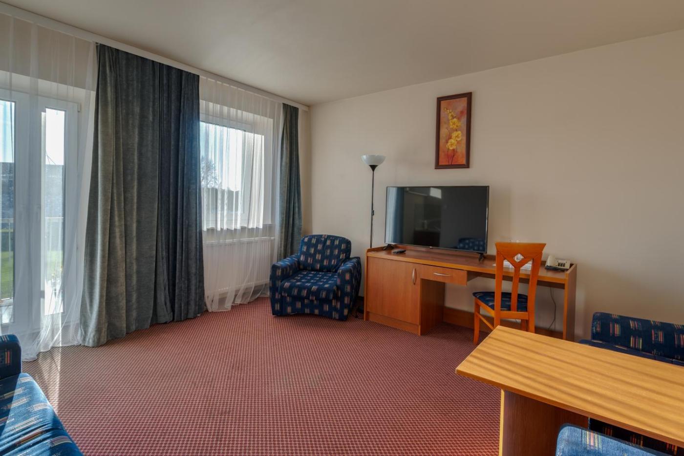 Apartament typu Suite. The hot tub is a top feature of this suite. This suite comes with 1 living room, 1 separate bedroom and 1 bathroom with a bath and a hairdryer. Boasting a balcony with city views, this suite also features a dining area and a flat-screen TV. The unit has 1 bed. Apartament typu Suite - 2 osobowy. ;